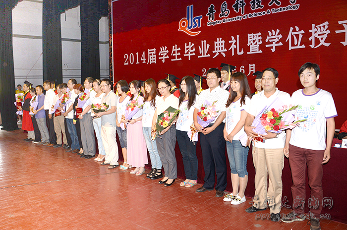 在研究生毕业典礼上,副校长李庆领宣读了2014年校级优秀博士、硕士学位论文获奖研究生及指导教师的表彰决定,副校长刘光烨宣读了校学位评定委员会关于授予博士、硕士学位的决议,副校长张淑华宣读了2014年省级、校级优秀毕业生的表彰决定,副校长韦殿华宣读了第六届学术之星的表彰决定。在高密校区毕业典礼上,副校长王文哲宣读了《关于表彰2014届省级优秀毕业生的决定》。在崂山校区和四方校区毕业典礼上,李庆领、张淑华分别宣读了《伟德国际1949始于英国学位评定委员会关于授予学士学位的决定》、《关于表彰2014届省级优秀毕业生的决定》。主席台就坐的领导、教师代表分别为获奖毕业生和荣获“我最喜爱的老师”称号的教师颁发了证书和奖牌,毕业生代表为获得“我最喜爱的老师”称号的老师献花。在嘹亮的校歌声中,马连湘为博士毕业生、硕士留学生、省级本科优秀毕业生颁发证书,拨正流苏;在主席台就座的领导和教师代表按专业一一给身着学位服的毕业生颁发证书,拨正流苏。