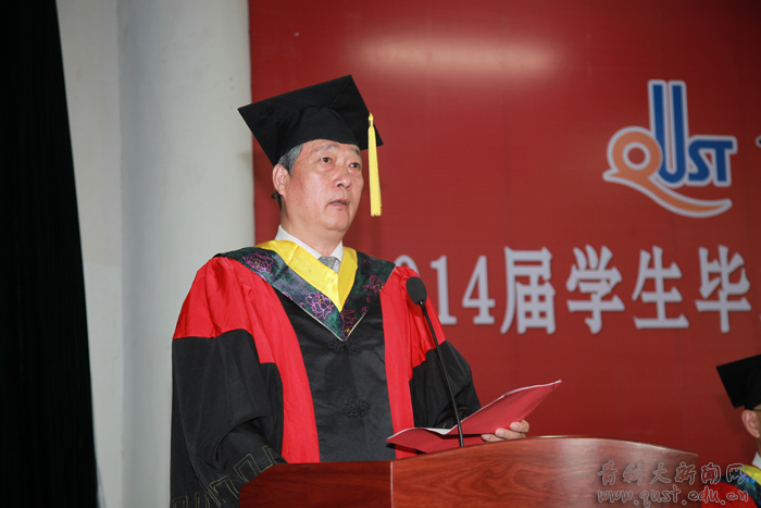 毕业典礼上,毕业生代表作了献辞,深情回顾了在科大生活学习的点点滴滴,表达了对母校、老师、同学的惜别和祝福。辛振祥、唐跃、孙艳华、刘中冬、蔡苏文、张峰、王兆波、仇汝臣等教师代表分别发言,表达了对毕业生顺利完成学业的祝贺和事业发展的美好祝愿。