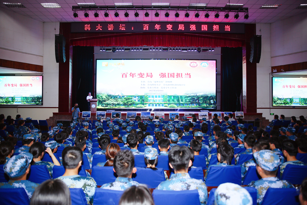 张洪坤在主持讲坛时指出,世界百年未有之大变局加速演进,中国式现代化建设的号角已然吹响。国家安全是安邦定国的压舱石,是亿万同胞根本利益的守护者。新时代大学生是国家未来的脊梁、民族复兴的希望,同学们的家国情怀有多浓,国防意识有多强,民族复兴的根基就有多稳固。他鼓励同学们将个人理想融入国家发展,传承和弘扬伟大抗战精神,让爱国的种子在心中扎根生长,让国防意识融入血脉、成为习惯,努力成长为担当民族复兴大任的时代新人。